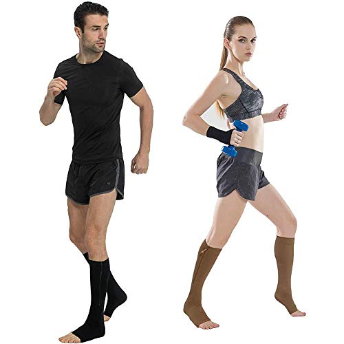 YSDQ 3 Paia Calze Elastiche Gambaletto Compressione con Cerniera, Punta Aperta Supporto per Gambe Gambaletto a Sox Calzino, Unisex