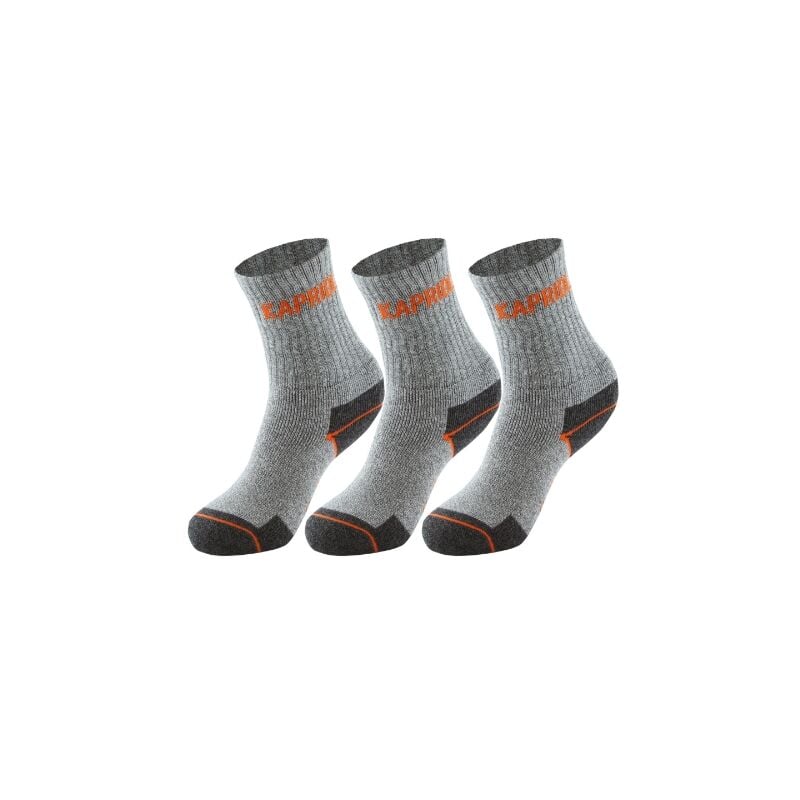 Calze Kapriol con lunghezza a tre quarti prodotte in tessuto sintetico. In kit da 3 paia, colore grigio con inserti arancioni. Taglia 45-47.. Acquistalo subito da CFadda e ricevilo comodamente a casa.