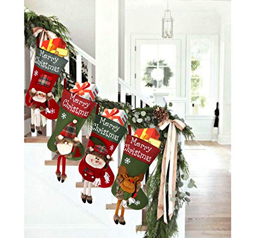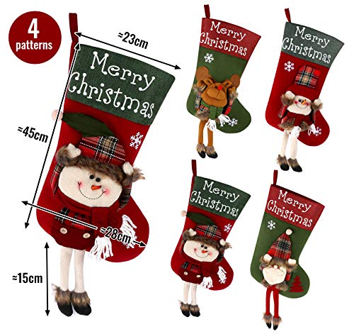 4 Stili Diversi: confezione grande valore 4 calza di Natale con Babbo Natale, due pupazzo di neve e una renna, ognuno stile ha le gambe appese lunghe che sono carine, ottima decorazione per Natale, Capodanno, per casa, ristorante, hotel, centro commerciale, ecc.