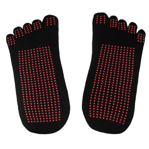 Calze da yoga / pilates / fitness, A 5 dita, Antiscivolo, Effetto gomma, Con tenuta aderente, Colore: nero, Black