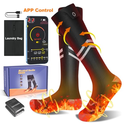 Calze Riscaldanti,Calze Riscaldanti Ricaricabili con Controllo Tramite App, 5000mAh Calze Riscaldate a Batteria per Riscaldare i Piedi con 3 Impostazioni di RIscaldamento, Timer (nero)