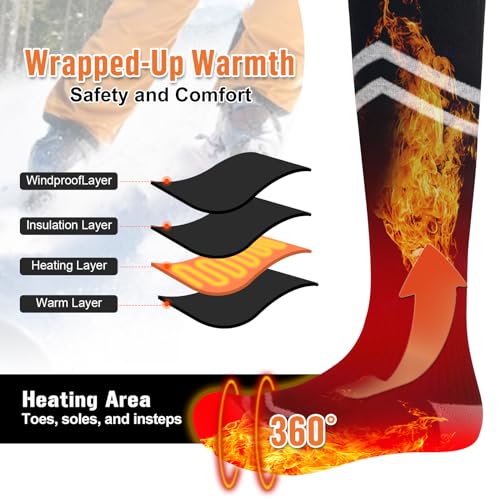 【Calze Riscaldanti Termiche Spesse e Calde】Le nostre calze termiche elettriche sono pensate sia per uomini che per donne e hanno una vestibilità super elastica per adattarsi a diverse misure dei piedi. Sono realizzate con un tessuto a 4 strati che incorpora filamenti riscaldanti, garantendo un calore uniforme a 360 gradi per le suole e le dita dei piedi. Queste calze offrono un calore confortevole e costante, permettendoti di dire addio al