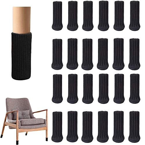 Set di 24 calze per sedia HAMON Elastico a Maglia Mobili Booties Proteggi-pavimento Gambe Sedia Antiscivolo Cuscinetti Tappi Copertina per Anti Scratch usati per Decorare (Nero)