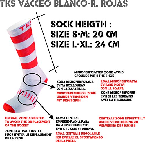 TKS Calzine Hi Cut strisce Bianco/Rosso Vacceo. Calze di compressione leggera per la corsa, ciclismo, trail. Taglia M 40-42.