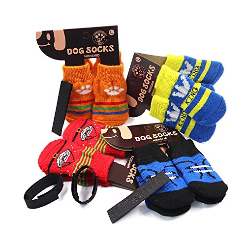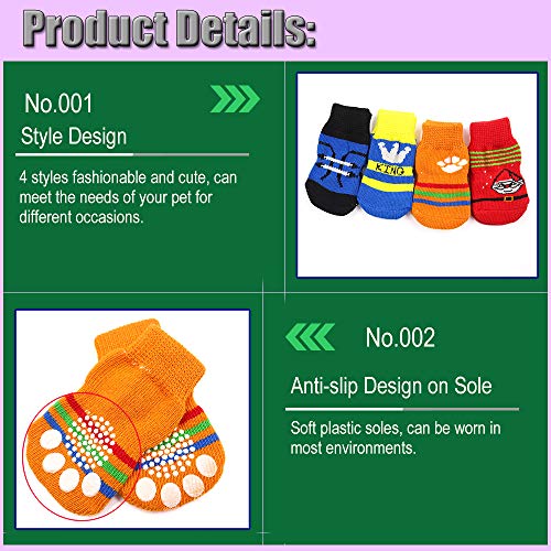 N/A/ 4 paia di calzini antiscivolo per cani, suola in gomma morbida con cinghie regolabili, controllo della trazione per cuccioli e gatti interni su pavimenti in legno duro (S)