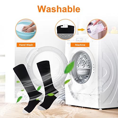 Calzini unisex: le nostre calze riscaldanti hanno una forte elasticità, taglia unica per unisex, adatte per la maggior parte delle persone. Lavabile in lavatrice, si prega di mettere i calzini riscaldati nel sacchetto per la biancheria in dotazione prima del lavaggio per evitare che il cavo di ricarica si strappi.