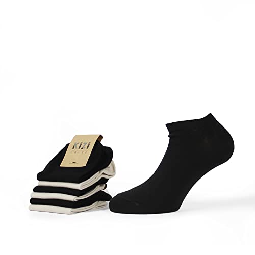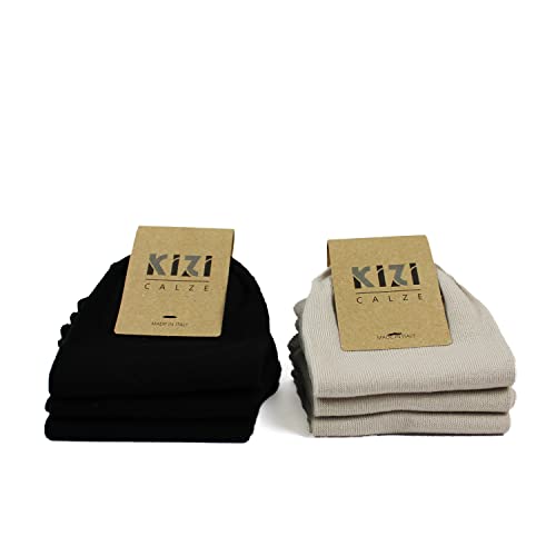 KIZI 6 Paia Calzini Fantasmini Unisex Uomo Donna in Cotone morbidi a righe, tinta unita o a pois - Made in Italy (Nero, Écru Tinta Unita, taglia 43-46)