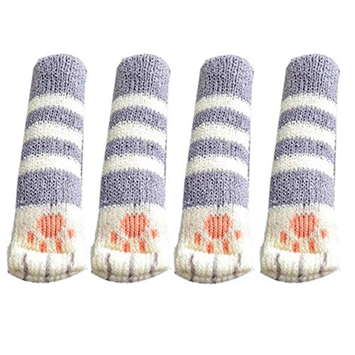 4pcs Calzini per Gambe Sedia in Maglia Stile Zampe di Gatto Coprigambe Sedie Anti Graffio Anti-Rumore Calzini Antiscivolo per Mobili Protezione Pavimento (Grigio)