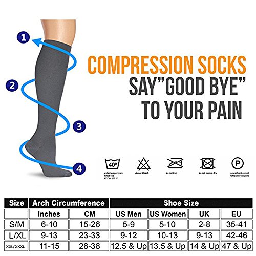 Promuovono il flusso sanguigno e la circolazione: fornisce una compressione delicata per il calore e migliorano il flusso sanguigno delle gambe. Rimuovono lo stress e stimolano ogni cellula, alleviando i sintomi di vene varicose e la ritenzione idrica in eccesso. Aiutano ad alleviare il dolore e il disagio legati alla fascite plantare;