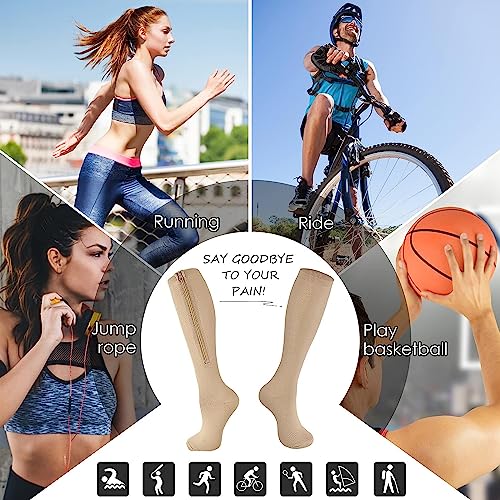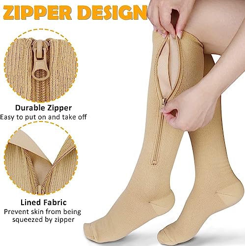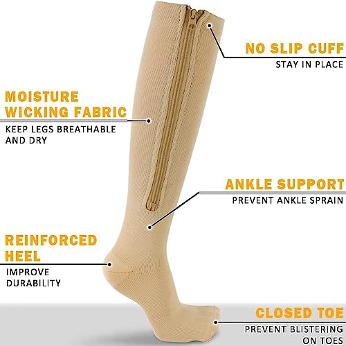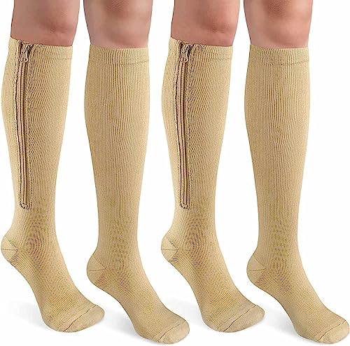 Calzini medici a compressione 2 Paia con cerniera 15-20 mmHg Supporto gamba con Cerniera di Supporto Migliore per Edema, Gonfiore, Gravidanza (S-M, Beige)