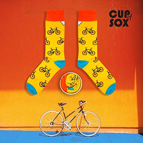 Calzini regalo colorati divertenti in tazza di carta per uomini e donne, motive biciclette gialle, cicli 41-44