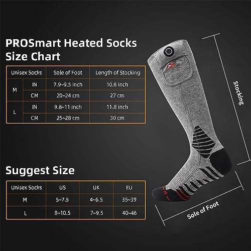 Calzini Riscaldabili Ricaricabili Calze Riscaldabili Elettricamente - Calzino Termiche Riscaldanti con Batteria 4400mAh per Uomini Donne Scii All'aperto Cacce Invernali Campeggio (L, Nero-Grigio)