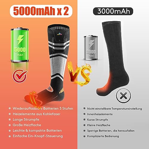 【Tecnologia di Riscaldamento a 360°】 Le calze utilizzano fili riscaldanti 3D che circondano le calze, garantendo una distribuzione uniforme del calore e il riscaldamento completo dei piedi. Queste calze riscaldate hanno una superficie di riscaldamento più ampia e sono 3 volte più calde rispetto ad altre calze, offrendo calore in 30 secondi. Mantieni i piedi caldi durante l'inverno freddo: il regalo di compleanno e Natale perfetto.