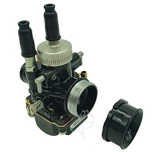 One by Camamoto carburatore dellorto (cod 77110221 dell'orto PHBG 21 DS (2696) racing black edition completo di attacco miscelatore depressione e aria manuale per Scooter, Ciclomotori (aria manuale))