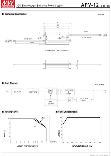 Mean Well, cambiar la Alimentatore, Converter per la luce di striscia flessibile del LED, il trasformatore, 110/220 V AC-DC Switching Power Supply 12 W 24 V 0.5 A, APV-12 - 24)