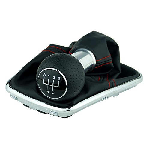 L & P A253 - 8 cambio in Nero con cuciture rosse rosso + pomello del cambio + telaio cromato con 5 Gang con 12 mm Pomello come plug play parte di ricambio per 1j0711113