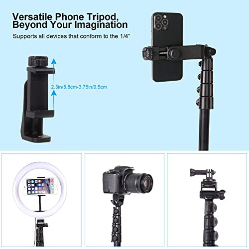 【 / 】 il treppiede ha una testa girevole universale a 360° da 1/4, che è altamente flessibile ed è dotato di una clip per cellulare con bocca per scarpa fredda, compatibile con la maggior parte dei telefoni cellulari sul mercato. È adatto per riprese video, TikTok, la scelta migliore per Youtube, streaming live, vlogging, ma supporta anche dispositivi come webcam, tester di temperatura, luci ad anello e luci a LED.