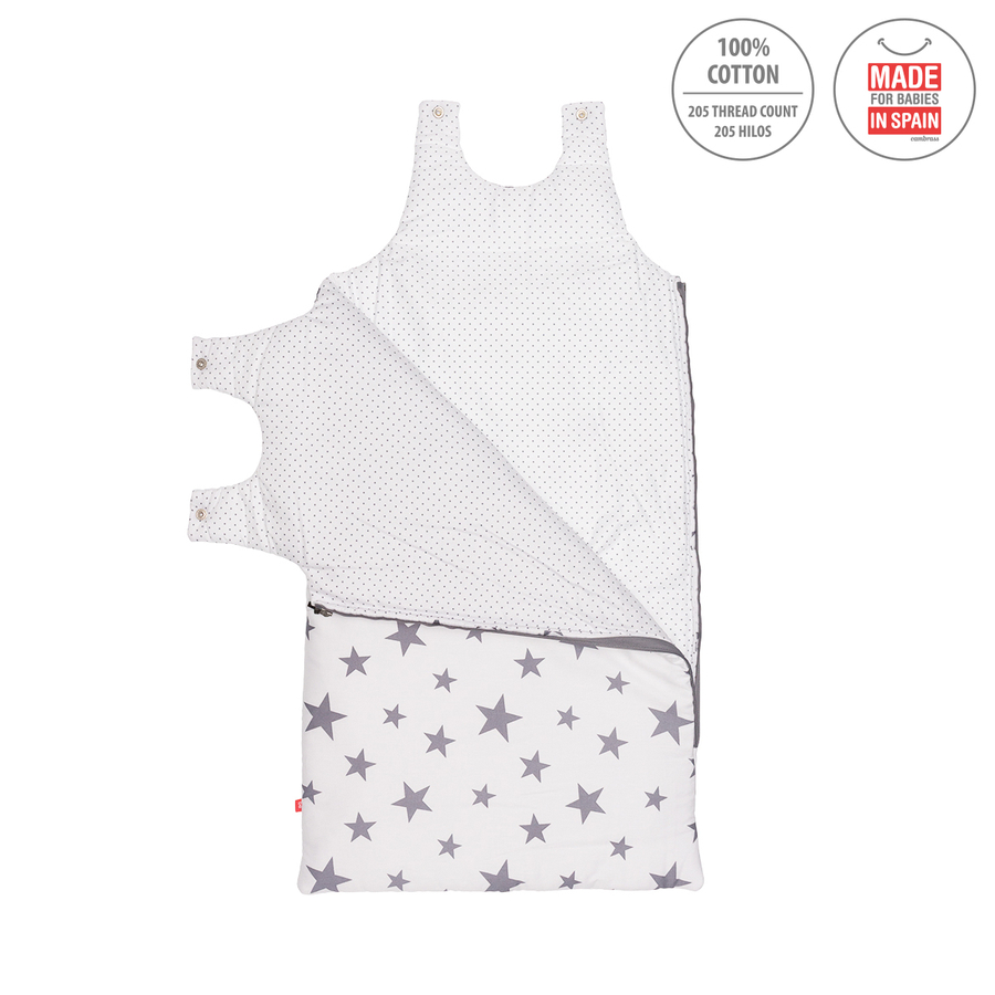 Il sacco nanna da 70/90 cm è uno dei modi più comodi e sicuri per far dormire il tuo bambino comodo e al caldo permettendogli comunque di muoversi liberamente. Il sacco nanna ha un sistema di chiusura a cerniera e morsetti, che lo rende facile da usare. Dettagli del prodotto: Materiale: 100 % cotone Rivestimento: 100 % Poliestere Lavabile fino a 40 °C Adatto all'asciugatrice Prodotto in Spagna Lunga zip con protezione