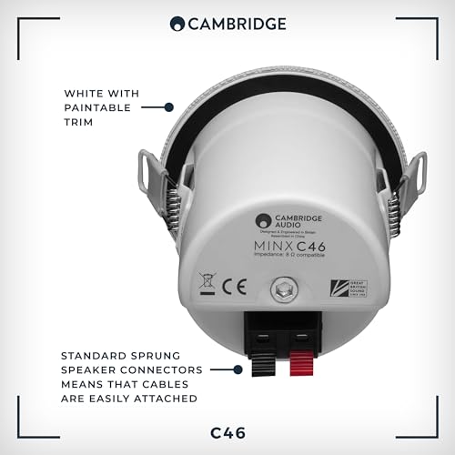 Cambridge Audio Minx C46 - Diffusore compatto da incasso a soffitto con tecnologia BMR - Adatto al montaggio di faretti standard - Dotato di finiture verniciabili