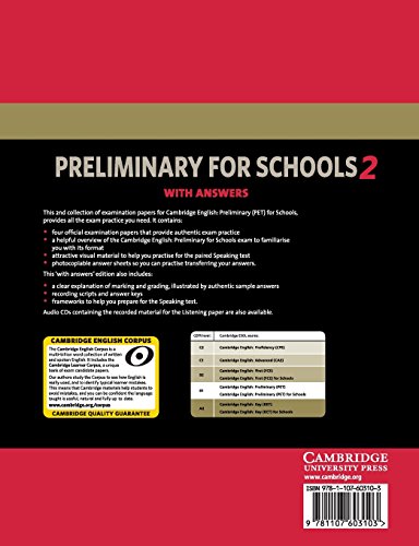 Cambridge English Preliminary for Schools 2 Student's Book with Answers: Authentic Examination Papers from Cambridge ESOL [Lingua inglese]: Vol. 2
