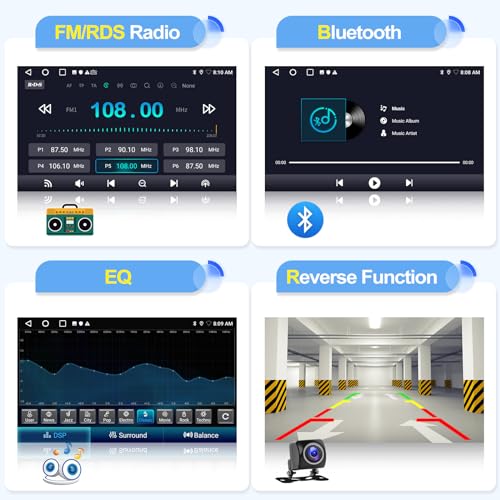 【Multimediale】Microfono integrato, vivavoce Bluetooth per cellulari iOS e Android. Sintonizzatore FM stereo digitale di alta qualità (RDS), in grado di ricercare le stazioni radio automaticamente/semi-automaticamente e con precisione. È possibile controllare il volume di ciascun altoparlante in anticipo. Inoltre, se si ritiene che la chiamata vocale sia bassa, è possibile collegare il microfono esterno presente nella confezione. In questo modo, l'esperienza di guida sarà più sicura