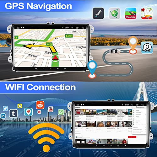 【Wireless CarPlay&Android Auto】Android 11 L'autoradio VW offre 4 modi per connettersi al telefono: Apple carplay wireless, Android auto wireless, carplay wired e Android auto wired. Connessione wireless tramite app ZLink, con cavo dati USB: navigazione vocale, chiamate, invio e ricezione di messaggi, ascolto di musica e altre funzioni.