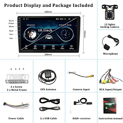 ★ 【Android Autoradio 2 Din avec DAB】Unité principale avec android 10.1 écran tactile HD capacitif de 10 pouces ( Puissance de sortie: 4*45W ), écran en verre trempé 2.5D avec haute sensibilité, Apple CarPlay sans fil intégré et fonction Android Auto filaire/autoradio Navi GPS/Bluetooth intégré/Et il comprend un tuner DAB+/FM/RDS. Taille du panneau: 250(L)*145(H)mm. Mémoire: 1GO (RAM)+16GO(ROM) Avec double entrée adaptateur double USB.