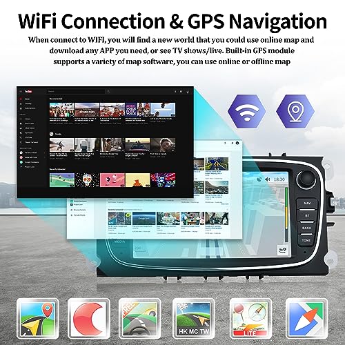 CAMECHO Autoradio Android 10 con Navi per Ford Focus C-Max S-Max Mondeo Kuga Galaxy,Autoradio Doppio Din con Schermo da 7 Pollici, Bluetooth | WLAN | FM/RDS | USB + Telecamera Posteriore