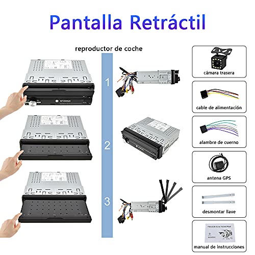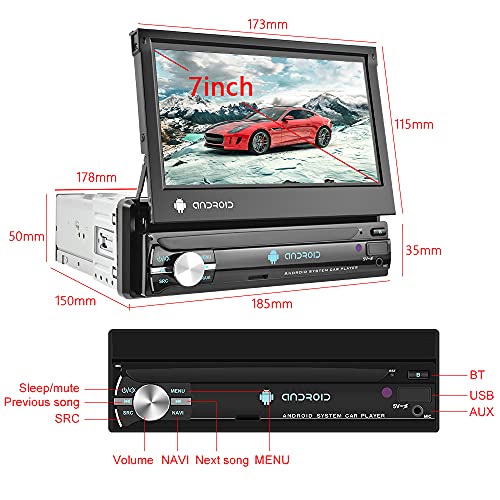 CAMECHO Autoradio Android 1 DIN GPS 7 Pollici Touch Screen Pieghevole Autoradio con Bluetooth RDS Navigazione Specchio Link WiFi AUX in FM Controllo del Volante, Fotocamera Posteriore