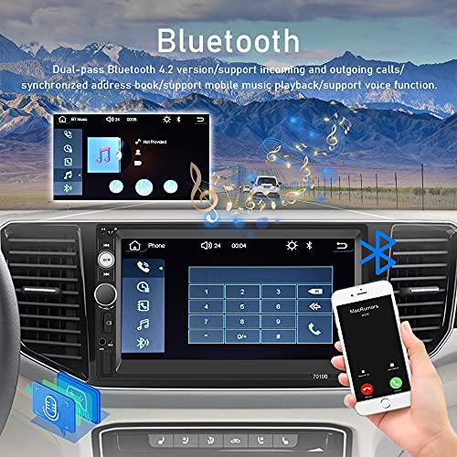 【Autoradio Bluetooth 2 din】 L'autoradio 2 Din è un lettore multimediale per auto touch screen HD da 7 pollici e la risoluzione dello schermo dell'autoradio è 1024 * 600. L'autoradio due din supporta carplay, Android Auto, chiamate in vivavoce Bluetooth, FM Radio, Mirror Link, USB e con una telecamera di backup