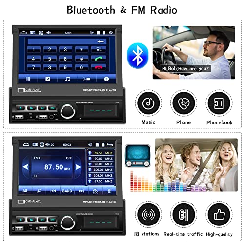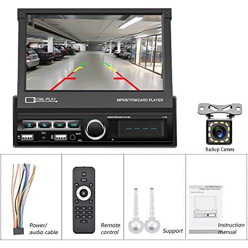 CAMECHO Autoradio 1 DIN Bluetooth con Schermo 7 pollici Retrattile Touch Screen Universale MP5 con ricevitore radio FM/AUX-in/Bluetooth + Telecamera di Backup
