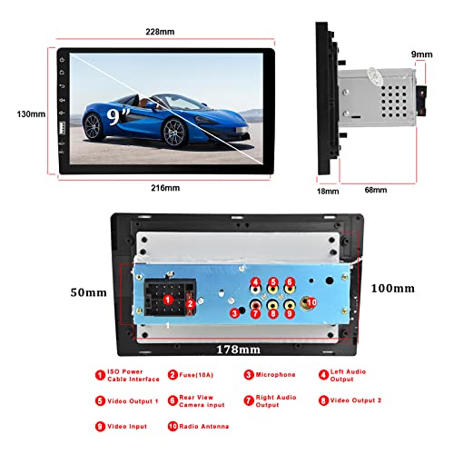 Autoradio 1 Din: l bluetooth autoradio, un lettore multimediale per auto universale con touchscreen da 9 pollici a singolo din. Questa auto radio 1 din supporta Apple Carplay, Android Auto, IOS e Android Mirror Link, chiamate in vivavoce Bluetooth, radio FM, funzione di controllo del volante ed è dotata di una telecamera posteriore a 12 LED, un microfono e altri accessori di base.