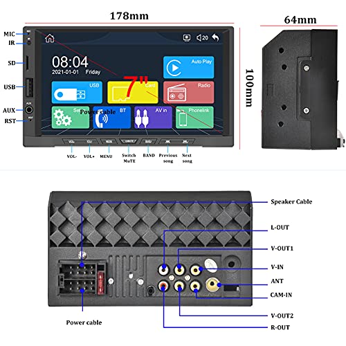 【Bluetooth e radio FM】 Funzione Bluetooth integrata, può essere collegata a telefoni cellulari, chiamate in vivavoce, guida più sicura, riproduzione di musica Bluetooth. Inoltre, l'audio dell'auto è dotato di una radio FM per 18 stazioni radio preimpostate, puoi trasmettere musica in streaming all'autoradio tramite FM e ascoltare le condizioni stradali in tempo reale, i notiziari, le previsioni del tempo, ecc. Goditi i migliori effetti son