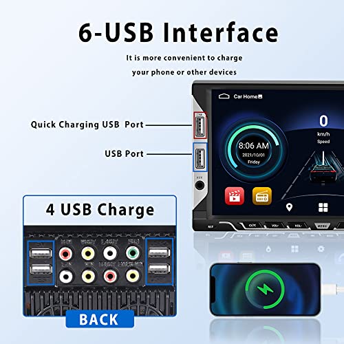 Nuovissima versione stereo per auto a doppio din da 7 pollici: 2022 Nuove uscite autoradio Android con 1GB (RAM)+16GB (ROM) di memoria vi permetterà di godere di un funzionamento fluido e intelligente.Alta risoluzione 1080P HD 7 pollici touch screen ti dà godimento visivo e compatibile con più funzioni, come lo schermo diviso, DVR, impostazione del tempo. Dimensioni dello schermo principale: 178(L)*102(H)*47(W)mm, con 6 interfacce USB/ Aux-in/ ingresso audio/video/porta di uscit