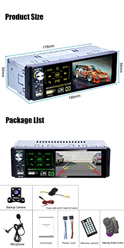 Dimensione articolo: 188 * 58 * 85 mm, autoradio ad un solo din. 4 "touch screen capacitivo, tocco delicatamente, alta sensibilità. Porte Dual USB (una per riprodurre musica, una carica rapida del telefono di supporto), AUX-in, slot per schede SD / TF. Uscita RCA / porta di ingresso, in grado di connettersi con subwoofer.