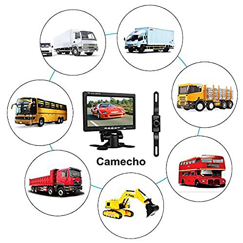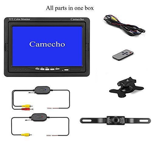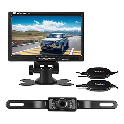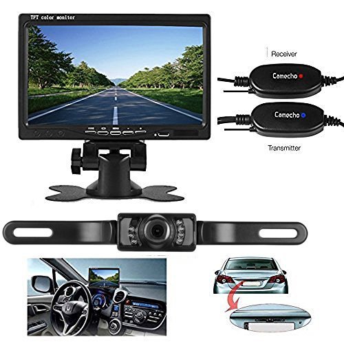Camecho, telecamera di retromarcia wireless, RC, 12 V, 24 V, per visione notturna, a infrarossi, impermeabile, per targa posteriore di auto, veicoli, camion, furgoni, roulotte, con schermo LCD a cristalli liquidi di 7 pollici