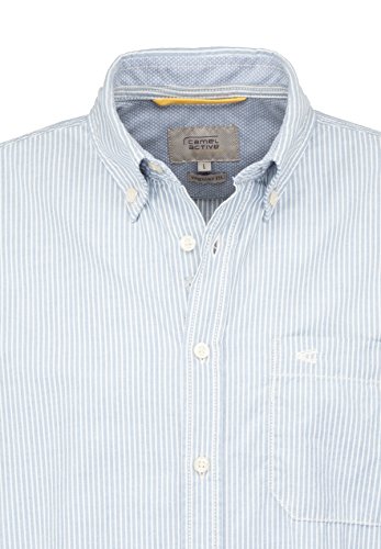 Camicia sportiva a righe Camel Active con colletto a bottone. Una tasca sul petto con un discreto logo C ricamato e una piccola applicazione sull'abbottonatura completano il look.