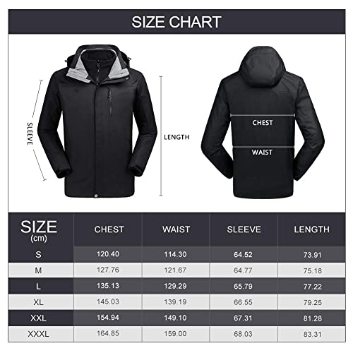 CAMEL CROWN Giacca Impermeabile 3 in 1 con Cappuccio da Uomo Antivento Giacca da Sci con Fodera Polare Giacca da Inverno per Montagna Campeggio Viaggio Sport Snowboard Tasche Multiple