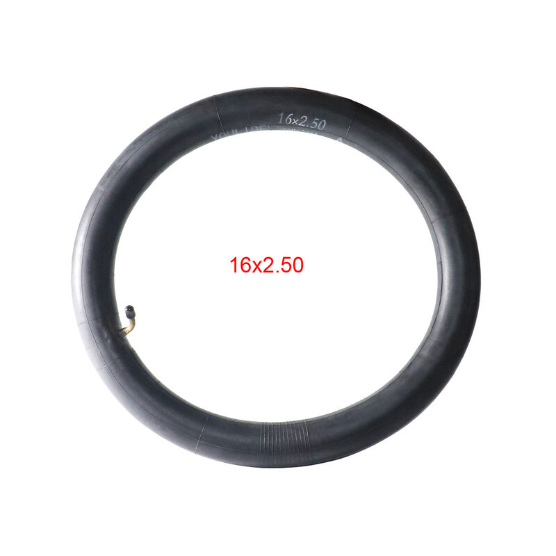 Tubo interno 16x2.5 con una Valvola Ad Angolo Bent Stem si adatta molti gas scooter elettrici e e-Bike 16x2.5 Materiale: Gomma Butile Dimensione del tubo: 16x2.5, Diametro Esterno 16 pollici Fit: a gas ed elettrici scooter e-Bike Mini crosser/Mini bici della sporcizia L'imballaggio include: 1pcs Interno Tubero