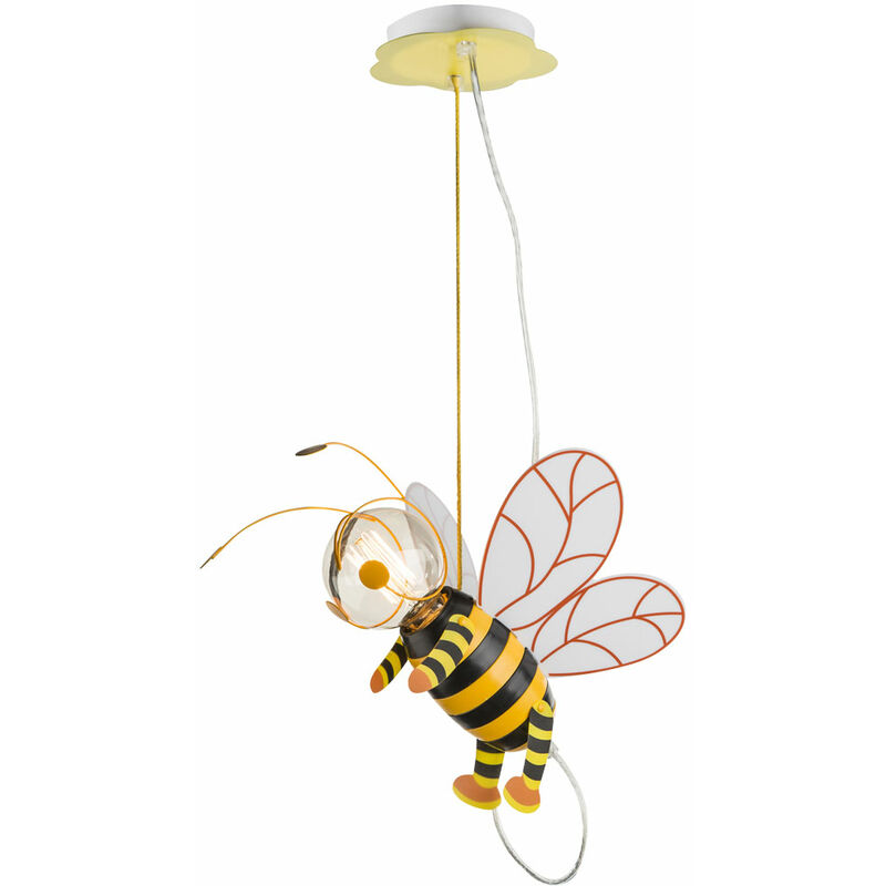 Descrizione Meravigliosa lampada a sospensione a forma di ape. Questa lampada fa battere forte il cuore dei bambini ed è una vera attrazione. Questa lampada a sospensione a forma di Bee si adatta perfettamente alla cameretta del tuo bambino. Una fonte di luce fino a 40 watt con attacco E27 può essere installato nella luce può essere utilizzato per illuminare lo spazio abitativo prescelto. La sorgente luminosa non è inclusa! Nota: La lampada deve avere un diametro di almeno 9 cm! Dettagli lampada • tipo di lampada: lampada a sospensione • motivo: ape • Materiale: metallo • colori: nero, giallo • ali, braccia/gambe: plastica• pendolo: plastica, trasparente / tessuto ( 100% cotone), giallo • Grado di protezione: IP20 • Lunghezza x larghezza x altezza in cm: 36x25x23 • Altezza totale con pendolo in cm: 120 • Diametro base in cm: ca. 15 • presa: 1x E27 • Lampadine incluse: no • diametro lampadine: almeno 9 cm • alimentazione lampadine: massimo 40 watt • alimentazione: da 220V a 240V, da