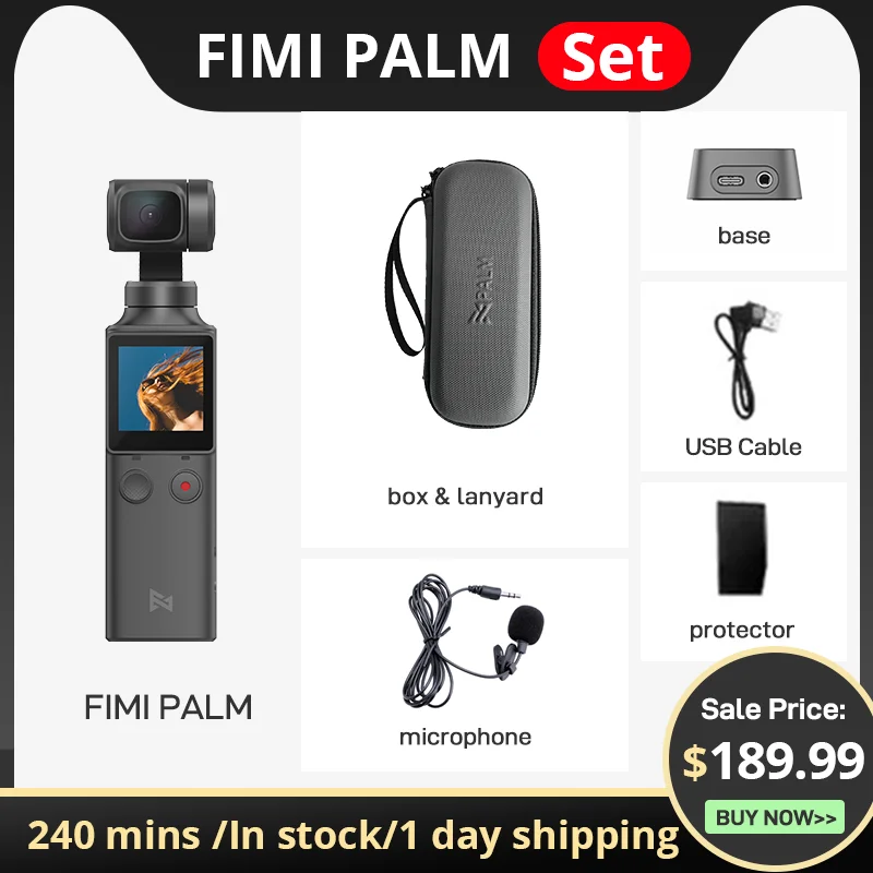 FIMI PALM camera Gimbal stabilizer set palm base original mic 128degree wide angle 4K UHD micro 3-axis handheld camera 240mins