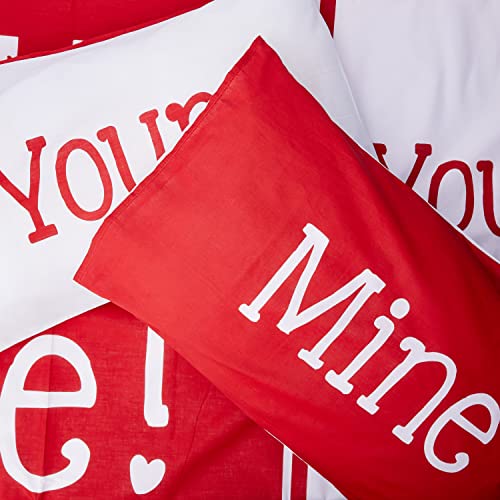 My Side Set per Camera da Letto con Copripiumino Matrimoniale e Due federe, con Scritta in Inglese " Your Side (Lingua Italiana Non Garantita), Colore: Rosso