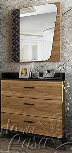 Camera da Letto Matrimoniale con Armadio 2 Ante scorrevoli Specchio Letto 2 Comodini Comò 3 Cassetti Stanza da Letto Completa Nero e Castagno Naturale CDLU24
