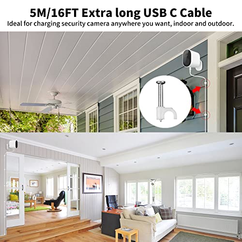 Cavo di alimentazione di estensione: estendere la portata della videocamera di sicurezza domestica o di altri dispositivi USB a USB C. I cavi USB C 16FT/5M abbastanza lunghi sono progettati per la telecamera di sicurezza, ideale per caricare la telecamera di sicurezza e dove vuoi, interno o esterno, portare più comodità alla tua vita. Non supporta il trasferimento dei dati!