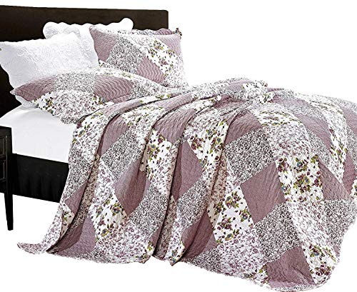 Camere Imperiali Copriletto Trapuntato - Ricamo a Patchwork, Set di 3 Pezzi con Copripiumino e Federa in Microfibra, Orchidea (361-10), re (230 X 250 cm)