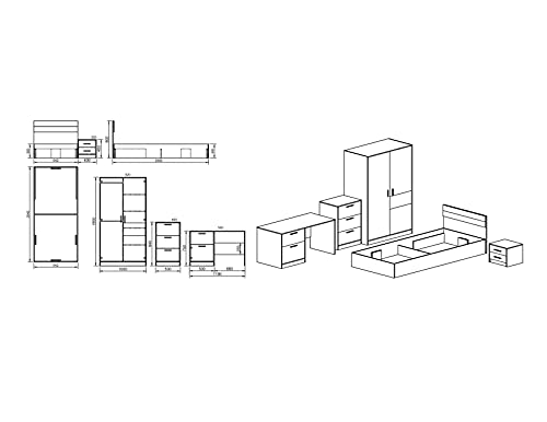 Cameretta Completa Armadio 2 Ante Letto Singolo Cassettiera Scrivania Comodino 2 Cassetti Camera da Letto Bambini CCI6