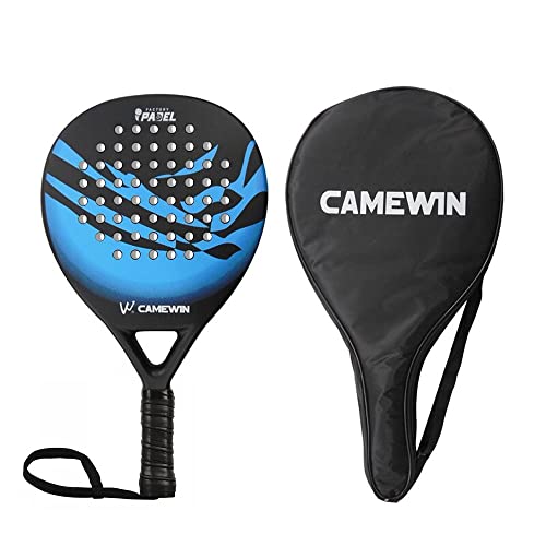 CAMEWIN racchetta Padel Goccia Carbon 38MM 375+/-10g, Pala Paddle, Forma Goccia, Bilanciamento Medio, Unisex Taglia Unica, Liscia, Custodia Inclusa, Padel Racket One Size (Nero/Blu)