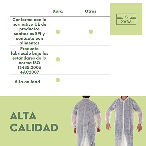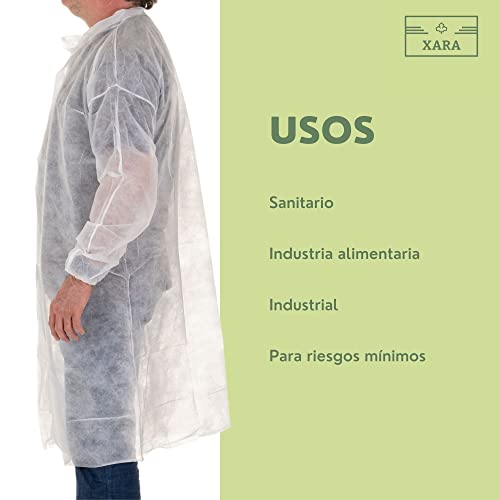 Xara - Camice in TNT con chiusura in velcro da 35 g - Traspirante e Resistente - Abito monouso monouso per rischi minimi e protezione generale - Colore bianco - Taglia XXXL - Confezione 50