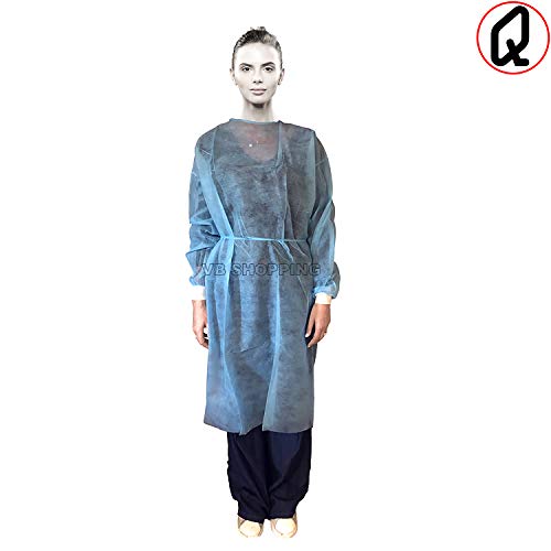 Camice Monouso in TNT 30g/mq, Camici Professionali Usa e Getta con Polsini in Puro Cotone, Lavoro fai da te. Colore: Verde - Blu - Bianco. Quantità 10 pz - 50 pz - 100 pz. (Blu, Quantità 100 pz)