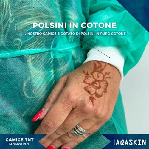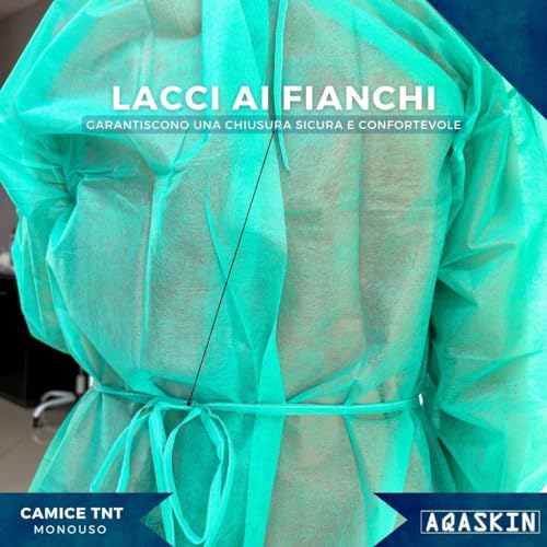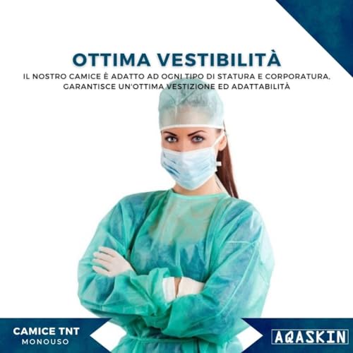 Camice Monouso in TNT 30g/mq, Camici Professionali Usa e Getta con Polsini in Puro Cotone, Lavoro fai da te. Colore: Verde - Blu - Bianco. Quantità 10 pz - 50 pz - 100 pz. (Blu, Quantità 50 pz)